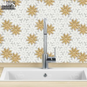 Bathrooms are increasingly becoming sanctuaries of self-care and style. The Diamond Luxury Marble Brass Mosaic serves as an elegant bathroom mosaic, offering a refined surface for vanity walls, shower enclosures, or feature sections. The brass inlay not only adds a touch of glamour but also reflects light beautifully, brightening the room and creating a sense of spaciousness. Its water-resistant properties make it a durable and practical choice for high-moisture areas without compromising on aesthetics.